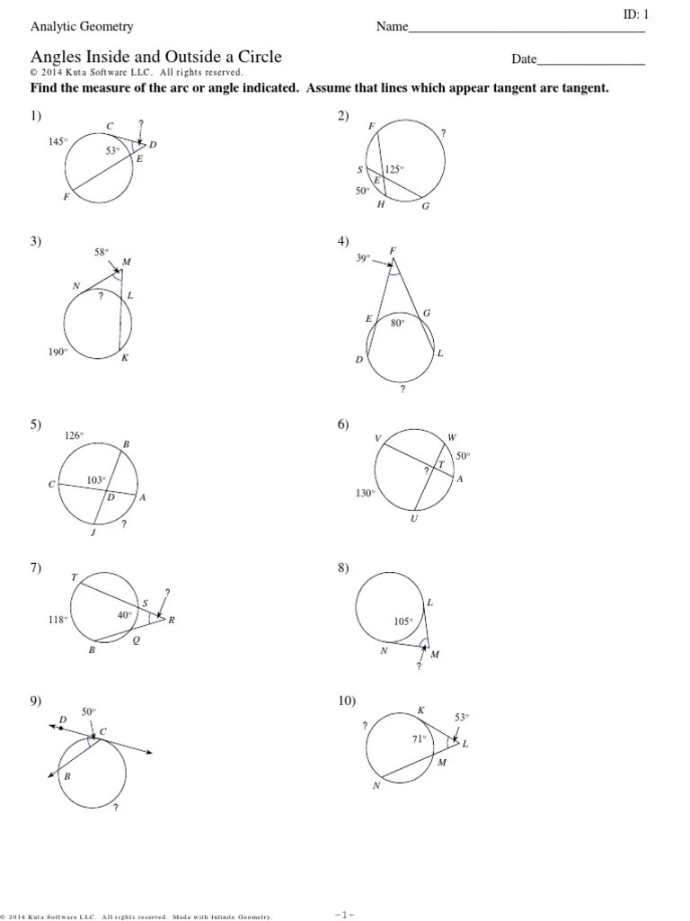 Circle Worksheet Geometry - Circle Geometry 1 Pdf Angle Circle /
